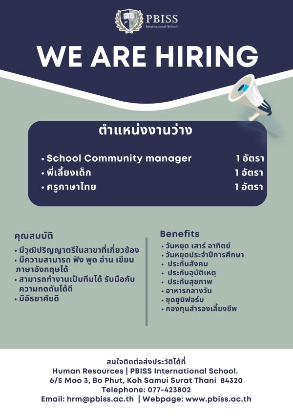 สนใจร่วมงานกับเรา สามารถส่ง Resume มาที่ [email protected] ยินดีต้อนรับทุกท่านค่ะ